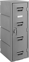 Mix and match sizes and styles to create a customized locker system. Made of plastic, these lockers are not only quieter than metal lockers, they also resist rust, dents, and scratches.