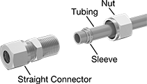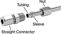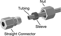 A single sleeve (ferrule) bites into tubing as you tighten the nut, creating a strong seal. The nut and sleeve are included. Fittings are also known as flareless fittings or bite fittings. Use them in low- to medium-pressure applications.