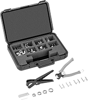 | 5/16" to 5/8" | 0.6" to 0.99" | 06, 08, 10, 12 | 5/16" | 0.024" | No | 122 | Cages with 5/16" band width for 5/16" hose ID (10 each) Clamps with 5/16" band width, .32" clamp ID (20 each) Cages with 5/16" band width for 13/32" hose ID (10 each) Clamps with 5/16" band width, .42" clamp ID (20 each) Cages with 5/16" band width for 1/2" hose ID (10 each) Clamps with 5/16" band width, .52" clamp ID (20 each) Cages with 5/16" band width for 5/8" hose ID (10 each) Clamps with 5/16" band width, .62" clamp ID (20 each) Pinch Clamp Pliers Hose Cutter | 6124N11 | 0000000 |