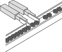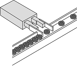 Two-finger cylinders are good for precisely positioning items for sealing, labeling, and inspection. Operating on fixed timing and sequencing, they extend one finger to stop a part then extend the other finger to separate it. The two fingers hold the part like you would between your thumb and index finger. When the part is ready to be released, they retract the first finger while the other finger continues to hold back other parts. Lastly, they retract the other finger to let the next part through.