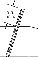 Note: Check local, state, and federal codes, including OSHA, for safe operating practices. Per OSHA regulations, the ladder rails must rise at least three feet above the elevated surface being accessed.