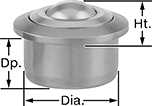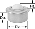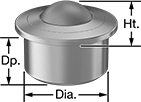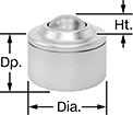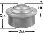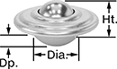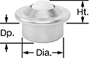 | Ball Dia. | Cap., lbs. | Ht. | Dp. | Dia. | Working Orientation | Flange Dia. | Temperature Range, °F | Each | ||