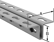 | (A) | (B) | Thick. | Material | Shape | Ctr.-to-Ctr. | For Screw Size | Mounting Fasteners Included | 1 ft. | 3 ft. | 4 ft. | 5 ft. | 6 ft. | 8 ft. | |