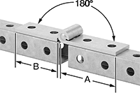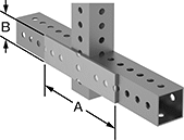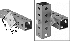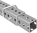 Rails have bolt holes on all four sides. Connect multiple rails with brackets or slide one length of rail into the next larger size and bolt together using curved-bolt or locking-pin connectors. Select connectors based on the larger size rail in the connection.