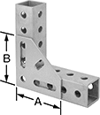 Surface brackets connect rails. These brackets do not have mounting holes already drilled, so you can drill holes where you need them or weld the brackets in place.
