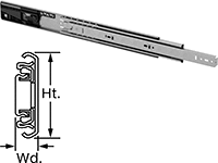 | Closed Lg. | Travel Lg. | For Max. Drawer Wd. | Wd. | Ht. | Capacity per Pair, lbs. | Fasteners Included | Screw Size | Pair | |
