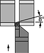 Neutral inserts have a 0° lead angle for cutting solid workpieces. Both right- and left-hand inserts have an 8° lead angle for cutting hollow workpieces, such as pipe and tubing. Use right-hand inserts when the workpiece is rotating counterclockwise, or toward you. Use left-hand inserts when the workpiece rotates clockwise, or away from you.