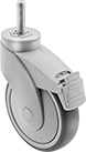 Add optional wheel brakes to swivel casters to prevent the caster from rolling. To install, replace the wheel's existing bushing with the brake bushing and position the brake pedal so it is parallel to the ground.