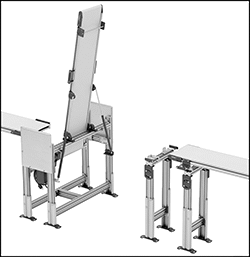 Lift gate conveyors can be raised like a drawbridge, so you can safely walk through your line. Install them in areas that don’t have room for crossover bridges to skip the long walk around your conveyor. The gate is spring loaded, which makes it easy to lift without effort. These conveyors have a mounting plate to connect to an existing conveyor.