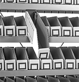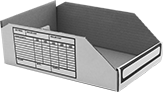Style A have an inventory-control label on the side. A tab on the back allows the bin box to catch the shelf above it and tilt out for easy access.