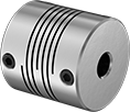 Spiral couplings have long, continuous cuts in the body, making them flexible enough to handle parallel, axial, and angular misalignment. Often used for light duty encoder and stepper drive applications, they allow zero backlash (no play) and never need lubrication. They’re also known as helical beam couplings. Spiral couplings are less rigid than parallel couplings.