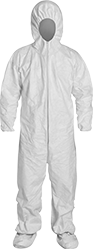 Keep dust, microbes, and other pollutants on your skin or clothing from contaminating a clean room. Wear them once, then throw them away. These coveralls are cleaned and individually bagged in a clean room, so they won’t shed any lint or dust in your space. They’re made of Tyvek polyethylene, which has fibers bonded under heat and pressure for softness and strength. They hold up to limited contact with nonhazardous liquids, such as water and paint spray. Elastic cuffs fit tightly at your ankles and wrists to block splashes.