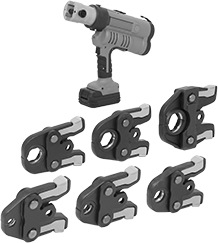 Jaws for copper tube sizes ½ to 2 fit directly into the included crimping tool.
