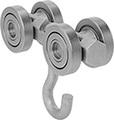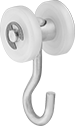 Hangers attach to doors and curtains and glide along the track to open and close them. They are sold individually—a minimum of two are required per door or curtain. Hangers with a hook fit through holes in curtains and strip doors.