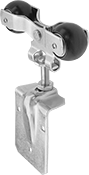 | Style | Capacity, lbs. | For Inside Track Wd. | Ht. | Mounting Plate Ht. | Mounting Hole Dia. | Material | No. of | Dia. | Type | Material | Mounting Fasteners Included | Each | |