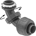 Twist these connectors into two pieces of liquid-tight flexible plastic conduit for a quick connection that seals out liquid and resists oil, corrosion, and UV light. When used with abrasion-resistant liquid-tight flexible plastic conduit (Type B), they are UL listed.