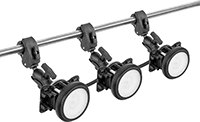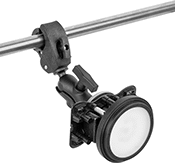 Safe to use in areas with ignitable concentrations of flammable or combustible gases, vapors, liquids, and dust, these lights are rated NEC Class I, Class II, and Zone 1. Their housing contains fire and sparks, so they don’t ignite what’s in your environment. They’re often used in refineries, mines, and paint booths. Rated IP66, they’re also dust tight and sealed against sprays of water such as those used in washdowns. Since each head weighs less than 2 lbs., they’re easy to hang overhead. Each head has two straps for mounting on pipes, beams, or other surfaces. For more precise control over where the light is directed, add mounting clamps (sold separately). One clamp is required for each head.