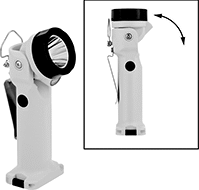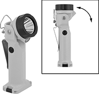 Tilt the head on these flashlights to point light where you need it in explosion-prone areas. Rated NEC Classes I and II, they’re safe to use where there are ignitable concentrations of flammable or combustible gases, vapors, liquids, and dust. Rated IP67, they seal out humidity and dripping, splashing, and falling liquids. They’re also dust-tight and will still work if temporarily submerged in water. These floodlights are tested against ANSI/PLATO FL 1 standards to confirm the accuracy of performance attributes such as beam distance, battery life, and impact resistance. For instance, they’ve been confirmed to still work if dropped from 6 feet.