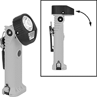 | B | Vertical | 325 lumens (3 hrs.) 80 lumens (13 hrs.) 300 lumens (4 hrs.) 70 lumens (16 hrs.) 300 lumens (4 hrs.) 70 lumens (16 hrs.) | High Beam Low Beam High Beam Low Beam High Beam Low Beam | 900 460 1,210 600 110 55 | Spot/Flood Spot/Flood Spot Spot Flood Flood | White | 7 15/16" | 2 7/8" | 3 5/16" | Yellow/Black | NEC Class I Divisions 1, 2 Groups A, B, C, D NEC Class II Divisions 1, 2 Groups E, F, G IP67 | 000000 | 000000 |