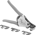 This kit includes a wire stripper plus four blades to strip electrical wire and coaxial cable. One squeeze strips insulation and pulls it off the wire.