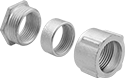 Join two different sizes of threaded conduit. Use with medium-wall (IMC) and thick-wall (rigid) steel conduit.