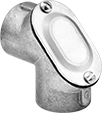 NPSM female 90° elbow connectors with removable cover allow for quick access to pull wire and cable.