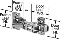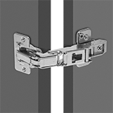 With a 170° range of motion, these hinges are for doors that need to open wide. Also known as European hinges, only one cutout (mortise) is needed for these hinges—mount the frame leaf to the inside cabinet wall and mount the door leaf into a recessed cutout (mortise) on the inside of the cabinet door. Once mounted, the hinges will be completely hidden from the outside when the door is closed. They are commonly found on washroom and kitchen cabinetry. All of these hinges have a nonremovable pin to deter tampering. They also have a quick-release clip for easy door removal.