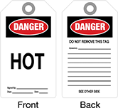 Tags are laminated in plastic so they hold up outdoors. Use them to communicate dangers to workers near equipment that could cause injury. Write on them using a permanent marker. All tags meet OSHA safety color standards for indicating hazards. Attach them with an included cable tie.