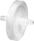 Filter out contaminants when drawing in and dispensing from syringes with a luer lock connection.