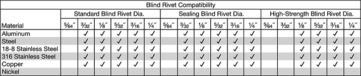 | 1 1/16" | 2 1/4" | 9 1/2" | 6 3/8" | 1/4"-20, 1/4"-28, 10-24, 10-32, 3/8"-16, 5/16"-18, 6-32, 8-32, M10, M3, M4, M5, M6, M8 | Bulbed, Sleeve, Smooth, Hex, Ribbed | Aluminum, Steel | Yes | Five nosepieces (3/32", 1/8", 5/32", 3/16", and 1/4") Two anvils (10-24 and 1/4"-20) Two pull-up studs (10-24 and 1/4"-20) | 0000000 | 0000000 |
