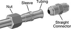 Also known as JIC (Joint Industrial Council) fittings, these provide a tight metal-to-metal seal on tubing that is flared to 37°. They require a nut and a sleeve (ferrule) for each tube end. Nuts and sleeves are sold separately. Fittings are zinc-plated steel for fair corrosion resistance.