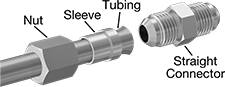 Also known as JIC (Joint Industrial Council) fittings, these provide a tight metal-to-metal seal on tubing that is flared to 37°. They withstand high pressure, so they’re often used in hydraulic applications. Made from 316 stainless steel, they resist corrosion from water and chemicals. A complete fitting requires a nut and a sleeve (ferrule) for each tube end. Nuts and sleeves are sold separately.