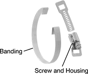 This banding is best for soft hose and tube but also works with firm hose and tube. It can also be used to clamp pipe, attach signs, and connect tubing. It is furnished in a dispenser carton. To install, cut the banding to your desired length with wire snips, feed it through the housing (sold separately), and tighten the screw with a slotted screwdriver or hex nutdriver.