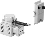 Style B pumps generate air for delicate suction and gripping common in robots, medical devices, and industrial automation. A digital pressure switch and relief valve automatically turn them on or off based on pressure levels. Use the included brackets to mount their controller on a 35 mm DIN rail.