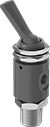 Toggle-switch valves stay open until you flip them closed. They don't need to be held open, so they’re often used to dispense larger samples than push-button valves. You’ll know at a glance if these valves are open or closed based on the toggle's position.