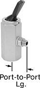 | Pipe Size | Thread Size | For Tube ID | Flow Coefficient (Cv) | Max. Pressure | Temperature Range, °F | Return Actuation | Port-to-Port Lg. | Panel Cutout Dia. | Each | |