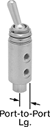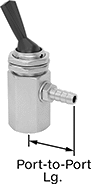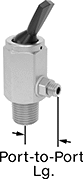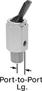 | Pipe Size | Flow Coefficient (Cv) | Max. Pressure | Temperature Range, °F | Return Actuation | Toggle Material | Port-to-Port Lg. | Panel Cutout Dia. | Each | |