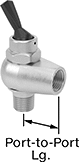 Make connections from any direction—the body of these valves swivels 360° for easy installation. Often used in testing and sampling applications, they quickly open and close with a toggle or button.