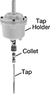 These instantly reversing tap holders allow you to back out of a hole once it has been tapped without stopping the machine's motor. They’re also known as tapping heads. Use them for fast, precise tapping on manually operated drill presses and milling machines. Collets (sold separately) are required to connect the tap to the holder.