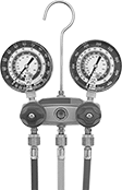 Monitor refrigerant pressure with analog gauges when servicing air conditioning systems. All manifolds have double O-ring piston valves. Manifolds with sight glass allow you to view liquid levels.