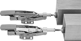 Hold workpieces of different thicknesses with one clamp. These clamps automatically adjust to compensate for variations in size. They secure when the plunger is fully extended to hold your workpiece from the side. The holding screw has a nonmarring tip.
