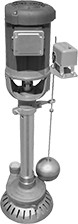 These pumps have an explosion-proof motor that is rated for use where hazardous material is present. Since the motor is totally enclosed fan cooled (TEFC) and never comes into contact with the water, the pump can be used with hot water up to 300° F. A pedestal-mounted motor design provides easy access for maintenance. The float switch has a separate cord that can unplug, so you can replace the switch without replacing the whole pump.