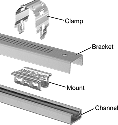 PVC-coated steel channel has mild corrosion resistance. Its coating reduces slipping and won’t mar attachments.