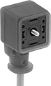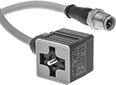 Use these cords with hydraulic and air-powered valves, motors, pumps, and pressure switches. They have a solenoid valve socket on one end and an M12 threaded plug on the other. The ground connection is not included in the number of poles. A power-indicating light on the socket illuminates when the cord has power. All are IP-rated for protection from washdowns and temporary submersion.