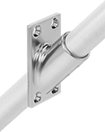 | Flange Shape | For Rail OD | For Pipe Size | Lg. | Wd. | Overall Ht. | Material | No. of | Dia. | Mounting Fasteners Included | Each | |