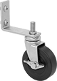 Extended-height bracket-mount casters install on the side of vertical T-slotted rails without needing to tap holes. They have a longer rod than standard bracket-mount casters, letting you mount them higher up the rail.