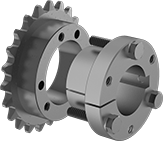 Bushings with a machine key fit into a matching keyway on a sprocket or pulley for high-torque applications.