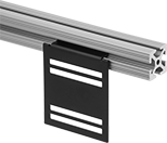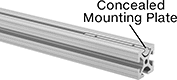 Concealed mounting plates slide inside the T-slot and have mounting holes. Attach parts to the bracket with screws (not included), and tighten the screws to hold the bracket in place.