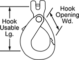 | Straight-Link Chain Trade Size | at 30° | at 45° | at 60° | Opening Wd. | Usable Lg. | Wd. | Lg. | Wd. | Thick. | Specifications Met | Other Lengths, ft. | 2 ft. Lg. | 3 ft. Lg. | 6 ft. Lg. | 8 ft. Lg. | 10 ft. Lg. | |