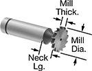 Made of solid carbide, these cutters are harder, stronger, and more wear resistant than high-speed steel and cobalt steel for the longest life and best finish on hard material. Their extreme hardness means they are brittle, so a highly rigid setup, such as a CNC machine, is necessary to prevent the end mill from breaking. Use them to mill precise notches in rotary shafts to fit machine keys. They can also be used for slot milling.